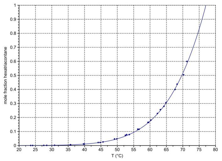 | Keywords: Hexatriacontane solubility in n-heptane.svg Solubility of hexatriacontane in n-heptane Löslichkeit von Hexatriacontan in n-Heptan own Steffen 962 2011-11-03 Data from Roberts K L ; Rousseau R W ; Teja A S Solubility of Long-Chain n-Alkanes in Heptane between 280 and 350 K in J Chem Eng Data 39 1994 793-795 Cc-zero Alkanes Solubility |