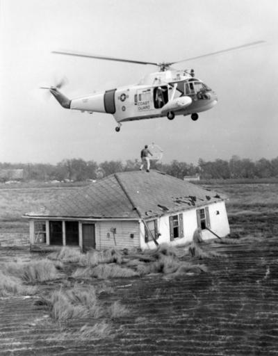 | Keywords: HH-52A rescues man from house Louisiana 1965.jpeg A U S Coast Guard Sikorsky HH-52A Seaguard helicopter s/n 1405 rescues a man who rode out Hurricane Betsy in a house near a swamp west of Delacroix Louisiana USA 1965 Hurricane Betsy hit Louisiana on the evening of 9 September 1965 http //collections naval aviation museum/emuwebdoncoms/pages/doncoms/AdvQuery php U S Navy National Museum of Naval Aviation photo No http //collections naval aviation museum/emuwebdoncoms/pages/doncoms/Display php irn 24593 QueryPage 2Femuwebdoncoms 2Fpages 2Fdoncoms 2FAdvQuery php 1993 501 073 256 1965-09 Cdr John C Redfield USCGR Ret PD-USGov-Military-Navy HH-52A Seaguard Hurricane Betsy 1965 in Louisiana September 1965 in the United States Saint Bernard Parish Louisiana |