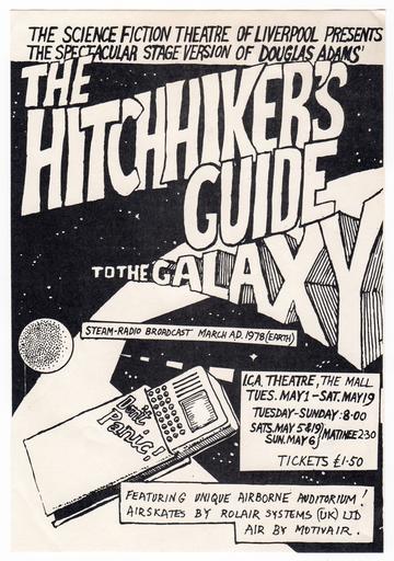 | Keywords: HHGTHG 1979 ICA Stage Production Flyer.jpg en Flyer for the 1979 stage production at the ICA of The Hitchhiker's Guide To The Galaxy 2016-09-13 19 49 47 This is a scan from my personal collection of theatre memorabilia This promotional item was given to me personally by Ken Campbell director of the show in May 1979 Unknown designer working for Ken Campbell's Science Fiction Theatre of Liverpool other versions 51 506183 -0 13105 cc-zero Playbills Science fiction Theatres in London Scanned with Epson Expression Premium XP-800 |
