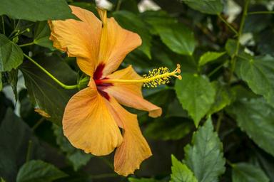 | Keywords: outdoor flower plant Hibiscus (/hᵻˈbɪskəs/[2] or /haɪˈbɪskəs/[3]) is a genus of flowering plants in the mallow family, Malvaceae. The genus is quite large, comprising several hundred species that are native to warm-temperate, subtropical and tropical regions throughout the world. Member species are renowned for their large, showy flowers and are commonly known simply as hibiscus, or less widely known as rose mallow. The flowers are large, conspicuous, trumpet-shaped, with five or more petals, color from white to pink, red, orange, peach,[5] yellow or purple,[6] and from 4–18 cm broad. en.wikipedia.org/wiki/Hibiscus Hibiscus (/hᵻˈbɪskəs/[2] or /haɪˈbɪskəs/[3]) is a genus of flowering plants in the mallow family, Malvaceae. The genus is quite large, comprising several hundred species that are native to warm-temperate, subtropical and tropical regions throughout the world. Member species are renowned for their large, showy flowers and are commonly known simply as hibiscus, or less widely known as rose mallow. The flowers are large, conspicuous, trumpet-shaped, with five or more petals, color from white to pink, red, orange, peach,[5] yellow or purple,[6] and from 4–18 cm broad. en.wikipedia.org/wiki/Hibiscus |