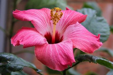 Keywords: hibiscus flower bloom blossom pink exotic tropical garden botanical plant blooming flora stamen bright vibrant nature