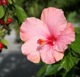 Keywords: hibiscus flower floral hibiscus rosa sinensis malvaceae petals mallow pink peach ornamental plant stamens pistil pollen chinese rose plant shrub
