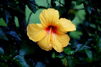 Keywords: hibiscus flower yellow natural on the branch botany flower in the garden flower in closeup