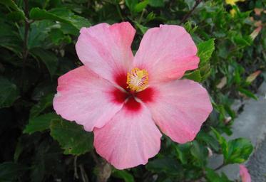 Keywords: hibiscus flowers pistil red pink leaf green ishigaki island okinawa japan outlying islands south island