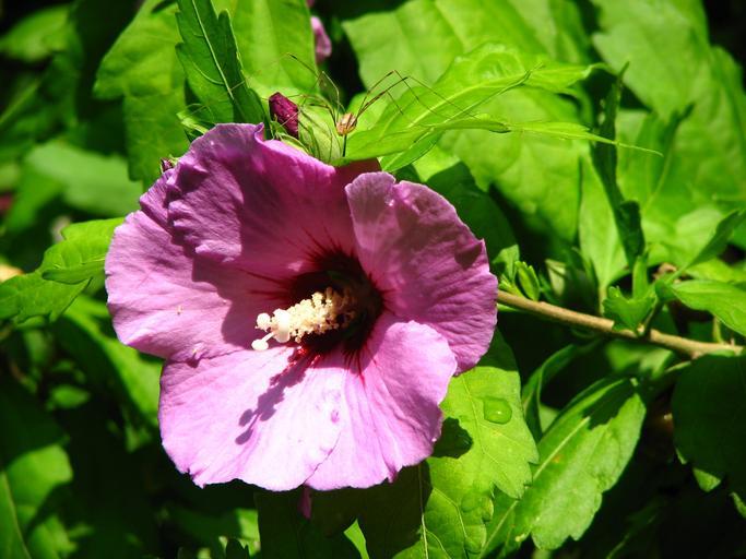 Keywords: hibiscus mallow purple blossom bloom spider flower bloom beautiful