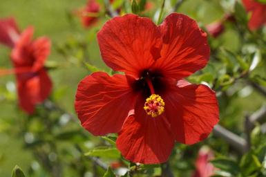 Keywords: hibiscus red blossom bloom flower mallow malvaceae plant exotic pistil summer tropical