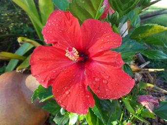 Keywords: hibiscus red flower garden wake up life passion