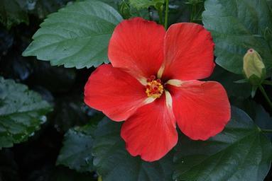 Keywords: hibiscus red flower nature floral tropical blossom green garden leaves