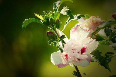 Keywords: hibiscus white-pink close flower blossom bloom plant garden full bloom