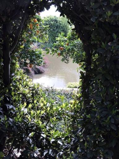 Keywords: hideaway green vacation garden secret lake water orange tree