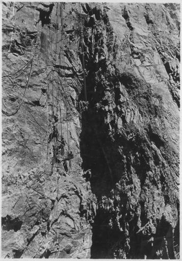 | Keywords: "High-scalers at work above inlet portal of Diversion Tunnel No. 1. Offset at right marks the upper reaches of the... - NARA - 293711.jpg Scope and content Photograph from Volume Two of a series of photo albums documenting the construction of Hoover Dam Boulder City Nevada General notes 293711 Local identifier Department of the Interior Bureau of Reclamation Engineering and Research Center 05/18/1981 - 03/04/1988 NARA's Rocky Mountain Region Denver NRGA Building 48 Denver Federal Center West 6th Avenue and Kipling Street Denver CO 80225-0307 1932-07-29 Record group Record Group 115 Records of the Bureau of Reclamation 1889 - 2008 Record group ARC 444 Photograph albums compiled 1903 - 1972 Series ARC 293611 File unit File unit ARC Variant control numbers NAIL Control Number NRG-115-CONSTPHO85006-BC21341 Other versions <gallery> File High-scalers_at_work_above_inlet_portal_of_Diversion_Tunnel_No _1 _Offset_at_right_marks_the_upper_reaches_of_the _-_NARA_-_293711 tif tif File High-scalers_at_work_above_inlet_portal_of_Diversion_Tunnel_No _1 _Offset_at_right_marks_the_upper_reaches_of_the _-_NARA_-_293711 jpg jpg </gallery> NARA-cooperation PD-USGov People associated with the construction of Hoover Dam workers high scalers |