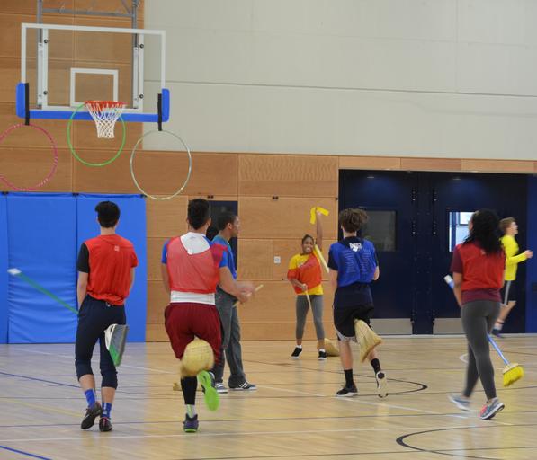 Keywords: sport court game team sport For one week, Ansbach Middle/High School was turned into "Hogwarts School of Witchcraft and Wizardry," based on J.K Rowling's Harry Potter books. The highlight and culmination of the week-long project, hosted as part of "Read across America Week," was a Quidditch tournament and the award ceremony for the house cup. (U.S. Army photos: Bianca Sowders, USAG Ansbach Public Affairs) For one week, Ansbach Middle/High School was turned into "Hogwarts School of Witchcraft and Wizardry," based on J.K Rowling's Harry Potter books. The highlight and culmination of the week-long project, hosted as part of "Read across America Week," was a Quidditch tournament and the award ceremony for the house cup. (U.S. Army photos: Bianca Sowders, USAG Ansbach Public Affairs)