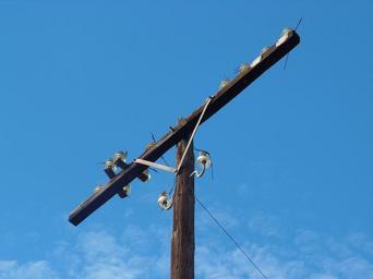 Keywords: high voltage line sky blue light pole light line clouds useless obsolete