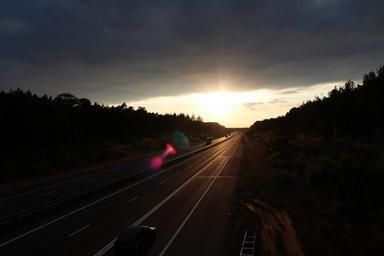 Keywords: highway evening lens flare road traffic transportation travel transport sky clouds outdoors scenic tranquil weather meteorology cloudscape environment nature