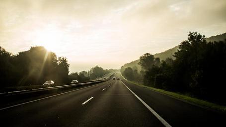 Keywords: highway road sun mood sky back light autos vehicles forest sunny winter sun travel pkw