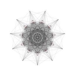 | Keywords: Higman-Sims-01.svg Created with Sage Higman “Sims graph as an orthogonal projection from a subset of the Leech lattice emphasizing a rotational symmetry of order 11 There are 11 possible such projections if we require all 22 points connected to the center point to form a regular 22-gon around it graphe de Higman “Sims comme projection orthogonale d'un sous-ensemble du réseau de Leech mettant en évidence une symétrie rotationnelle d'ordre 11 Il y a 11 telles projections possibles si on impose aux 22 points reliés au point central de former un 22-gone régulier autour de lui own Gro-Tsen 2010-10-30 Source code The following Sage source code can be used to generate the graph data for this file and the similarly named ones the actual SVG files were generated by postprocessing this output with a simple Perl script not listed here <syntaxhighlight lang python >m24 MathieuGroup 24 lst m24 conjugacy_classes_representatives elt x for x in lst if x order 11 0 fixthis Permutation elt fixed_points octad0 Permutation x fixed_points for x in lst if x order 2 and len Permutation x fixed_points 8 0 octads gap Orbit gap m24 octad0 OnSets sage octads22 o for o in octads if fixthis0 in o and fixthis1 in o pointP QQ 24 4 if i+1 in fixthis else 0 for i in range 24 pointsQ QQ 24 -3 if i k else 1 for i in range 24 for k in range 24 if not k+1 in fixthis pointsR QQ 24 2 if i+1 in o else 0 for i in range 24 for o in octads22 hsGraph pointP + pointsQ + pointsR melt elt matrix def sqnorm v return sum x x for x in v adjacency i for i in range i0 if sqnorm hsGraphi-hsGraphi0 48 for i0 in range 100 def chop v if abs v <1 e-9 return 0 return v p sum melt i N exp -2 I i pi/11 for i in range 11 /11 def writeit twist fname v p CC 24 1 if i 0 else N exp twist I pi/11 if i 1 else 0 for i in range 24 va RR 24 vi real for i in range 24 vb RR 24 vi imag for i in range 24 t va norm v / t va / t vb / t coords va pt vb pt for pt in hsGraph fd open fname w for i0 in range 100 for i in adjacencyi0 print >>fd line chop coordsi00 chop coordsi01 chop coordsi0 chop coordsi1 for pt in coords print >>fd point chop pt0 chop pt1 fd close for i in range 1 22 2 writeit i /tmp/hs 02d dat i </syntaxhighlight> Higman-Sims Graph Images with Sage source code |