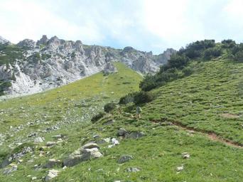 Keywords: hike hiking trail gta wanderer backpackers backpacker day trip human person alone on the go mountains mountain grassy slope maritime alps grande traversata delle alpi long distance trail alpine monte ciotto mieu