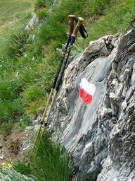 Keywords: hiking poles signpost characters red white sticks maritime alps alpine mountains hike gta grande traversata delle alpi long distance trail hiking