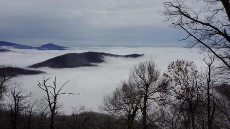 Keywords: Nature Mountain Trail National Park Trekking Hiking Skyline USA Hike Camping Campground Shenandoah Valley Sky Hawk hoarfrost Marys Rock Winter Fog