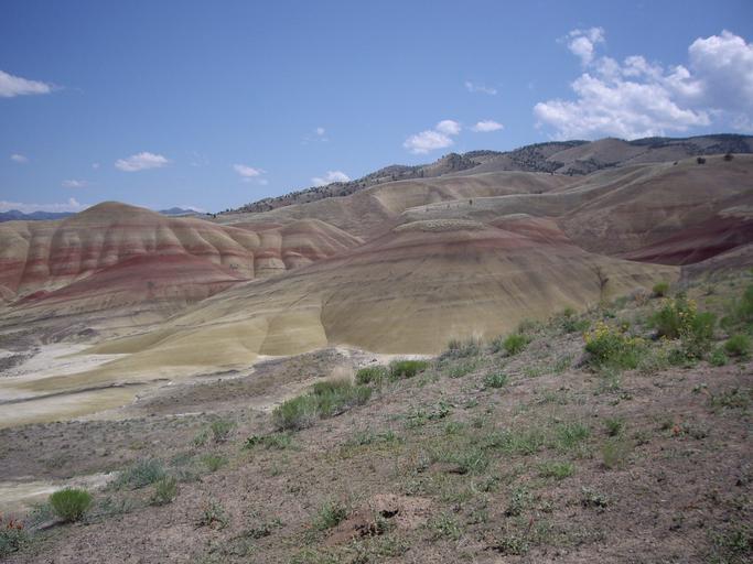 Keywords: hill desert rocks landscape arid dry shrubs nature sky clouds blue