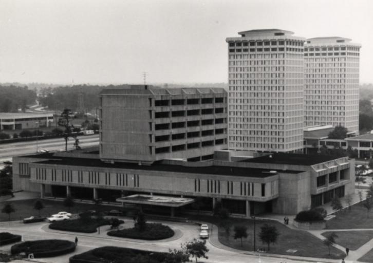 Keywords: Hilton College of Hotel and Restaurant Management Building UH.jpg en A view of the University Campus including the Conrad N Hilton College of Hotel Restaurant Management and the Moody Towers residence halls The Hilton Hotel and Conference Center was dedicated on June 17 1971 but not occupied until 1974 The architects were Pierce Pierce The Moody Towers are twin high-rise student residence halls designed by architects Pitts Phelps White and occupied in 1970 http //digital lib uh edu/u /p15195coll3 252 University of Houston Digital Library 1974-2000 This image is in the public domain and may be used freely If publishing in print electronically or on a website please use the citation Courtesy of Special Collections University of Houston Libraries To order a higher resolution reproduction see http //info lib uh edu/about/campus-libraries-collections/special-collections-archives/request-digital University of Houston Libraries University of Houston Conrad Hilton |