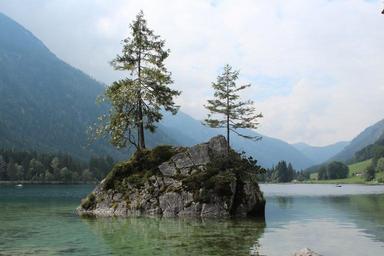 Keywords: hintersee berchtesgaden bavaria lake nature trees landscape rest waters island rock clear water water