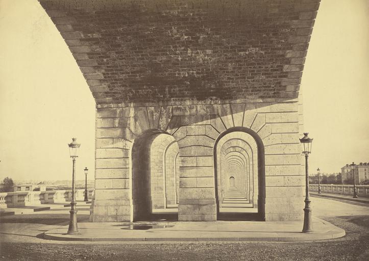 | Keywords: Hippolyte-Auguste Collard, Pont du Point du Jour - Getty Museum.jpg Artwork Creator Hippolyte-Auguste Collard Blick durch die Fufsgangerpassage unter dem Viadukt The subject is the Viaduct of Auteuil an elaborate two-story 1 073-meter-long viaduct with 151 arches that spanned the distance between the town of Auteuil and the Point-du-Jour bridge outside Paris Although the absolute symmetry of the bridge and light posts is compelling and might have attracted another photographer Hippolyte-Auguste Collard made a less obvious choice positioning his camera at the end of the Point du Jour slightly off-center and toward the middle of the right pedestrian arcade This view establishes an unobstructed line of sight to a point in the far distance making the viaduct seem infinite The shadowy sweep of the bridge overhead fans out of the frame like a lopsided crown while a puddle of water just in front of the left pedestrian passageway whose arch bears the stains of seeping water suggests a more mundane problem threatening the impressive structure 1863/1866 Albumen print Image 25 2 x 35 4 cm 9 15/16 x 13 15/16 in Mount 48 1 x 63 cm 18 15/16 x 24 13/16 in Institution Getty Museum object history exhibition history other versions 50723 Markings Recto mount blindstamp at lower center ATELIER CENTRAL DE PHOTOGRAPHIE / COLLARD PHOTOGRAPHE / DES PONTS ET CHAUSSÉES / Bould de Strasbourg 39 <br> Inscriptions Recto mount inscribed in black ink at upper center near corner of image XV credit line accession number 84 XP 776 1 PD-100 Photographs of Paris by Hippolyte-Auguste Collard Viaduc d'Auteuil Paris in the 1860s Albumen prints Photographs in the Getty Museum |