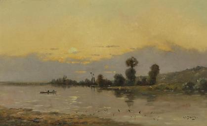 | Keywords: Hippolyte Camille Delpy - Une vue sur le fleuve au coucher du soleil.jpg Artwork Creator Hippolyte Camille Delpy oil panel cm 36 8 61 accession number object history credit line exhibition history H C Delpy lower right signature http //www bonhams com/auctions/20902/lot/1191/ Bonhams San Francisco 18 Mar 2013 lot 1191 PD-old-100 Camille-Hippolyte Delpy Paintings of the Seine 19th-century landscape paintings landscape paintings of France Images from Bonhams | ||||
