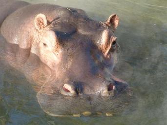 Keywords: hippopotamus submerged water mammal hard large massive eye