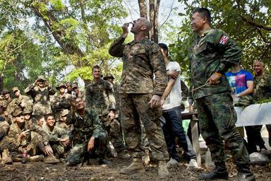 | Keywords: Hires 130217-M-IJ457-062c.jpg en U S Marine Corps 1st Sgt Joshua Clayton center first sergeant Company A 1st Battalion 3rd Marine Regiment eats a live scorpion during a jungle survival course conducted by Royal Thai Marine Chief Petty Officer 1st Class Pairoj Prasansai Recon Battalion Marine Division in Ban Chan Krem Chanthaburi province Kingdom of Thailand Feb 17 The class was held to teach U S Marines basic jungle survival techniques as part of Exercise Cobra Gold 2013 CG13 CG 13 in its 32nd iteration is designed to advance regional security and ensure effective response to regional crises by exercising a robust multinational force from nations sharing common goals and security commitments in the Asia-Pacific region U S Marine Corps photo by Sgt Matthew Troyer/Released 2013-02-16 10 56 22 http //defense gov U S Departement of Defense PD-USGov Uploaded with UploadWizard Survival training United States Marine Corps in Thailand Cobra Gold 2013 |