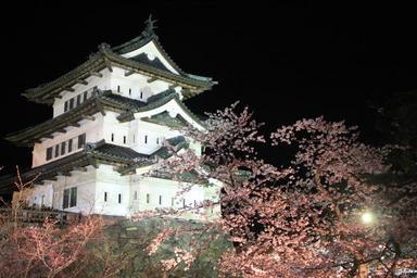 Keywords: Hirosaki Castle.JPG en The night view of Hirosaki Castle with cherry blossom ja 弘前城の 景と 2010年投稿 撮影 Kojin 2010-05-01 Hirosaki Castle Spring in Aomori prefecture