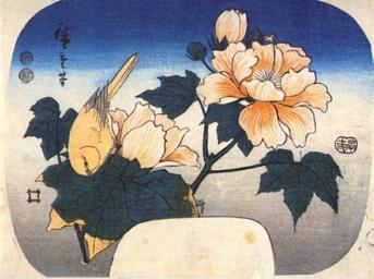 View Original:hiroshige_yellow_bird_cotton_rose_1852.jpg (730x545)