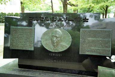 | Keywords: HiroshimaMarcelJunod7028.jpg Monument in Hiroshima Japan to Dr Marcel Junod May 14 1904 - June 16 1961 Delegate of the International Committee of the Red Cross Geneva Switzerland from 1935 to 1945 Member of the ICRC from 1952 to 1961 Vice-President from 1959 to 1961 Marcel Junod entered the city of Hiroshima on September 8 1945 approximately one month after the atomic bombing on August 6 1945 He stayed in the city for five days visited all of the major hospitals distributed 15 tons of medical aid supplies and personally gave medical care The monument is located in the Peace Memorial Park in Hiroshima Japan I took the photo The text of the inscription in Japanese left and in English right is On August 9 1945 Dr Marcel Junod arrived in this country<br>as Chief Representative to Japan of the International Red<br>Cross Committee On hearing of the terrible destruction caused<br>by the atomic bombing in Hiroshima Dr Junod immediately<br>proceeded to the General Headquarters of the Occupation<br>Forces and insisted that the authorities send relief materials<br>to Hiroshima On September 8 he entered the devastated city with no less<br>than fifteen tons of prepared medicines While occupied in<br>surveying the actual extent of the appalling catastrophe he<br>himself treated many citizens who had fallen victim to the<br>A-bomb The medicines brought to the city through his<br>endeavours were distributed to each aid station saving thousands<br>of A-bomb survivors We erect this Monument in grateful remembrance of<br>Dr Junod for his humane acts and as a tribute to the<br>International Red Cross for its continuing work of human<br>compassion September 8 1979 Fg2 Hiroshima Peace Memorial Park Marcel Junod International Committee of the Red Cross |