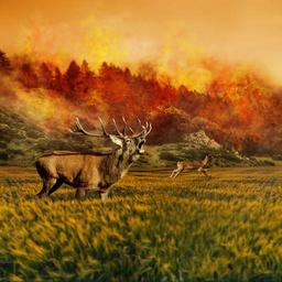 Keywords: hirsch roe deer forest brand forest fire fire eradication wild antler nature animal fallow deer red deer scheu damm wild animal world field trees destruction nature conservation wildlife photography landscape meadow wilderness