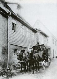 | Keywords: Hirschhorn Postkutsche 180-004.jpg Postkutsche bei der Abfahrt in Hirschhorn 1906 Postkutsche des Liniendienstes Hirschorn - Waldmichelbach mit Fahrer Ritter und Tochter Anna žPostkutsche bei der Abfanhrt in Hirschhorn 1906 in Historische Bilddokumente http //www lagis-hessen de/de/subjects/idrec/sn/bd/id/180-004 1906 author Hirschhorn Neckar PD-Art PD-old-100 Germany |