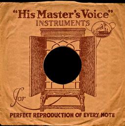 Keywords: his masters voice shellac shellac disc 78rpm album cover gramophone plate label listen to music 1920 1930 nostalgia sound engineering cover front acoustics sound funnel tinge analog vintage
