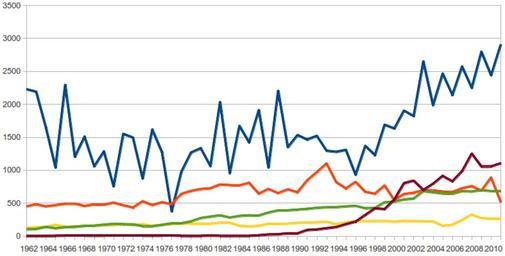 | Keywords: Historic output of the top 5 coffee producers 2011 (1962-2011).png 004586 Brazil 7e0021 Vietnam 579d1c Indonesia ff4816 Colombia ffd320 Ethiopia own jonkerz ™ talk 04 39 26 April 2013 UTC 2013-04-26 Economics of coffee Economic line charts Uploaded by jonkerz cleanup Uploaded by jonkerz |