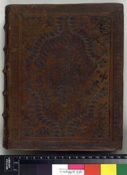 | Keywords: Historica - Upper cover (c108pp5).jpg Style Peasant floral coloured vellum; Caption Upper cover; Colour Brown; Edge Unspecified exhibition history Decorative Technique Tooled in silver; Cover Material Calf Unspecified object history Text 1733; Unspecified; Unspecified object type Cc-zero place of creation Binding Germany place of discovery Unspecified British Library image http //www bl uk/catalogues/bookbindings/LargeImage aspx RecordId 020-000008694 ImageId ImageId 43952 Copyright BL Historica Uploaded with GWToolset Historica - Upper cover c108pp5 http //www webarchive org uk/bldatasets/bindings/9342_4 jpg Bookbinding 18th-century bookbinding British Library Bookbindings |