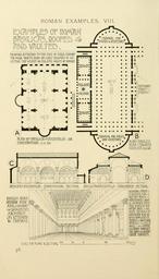 | Keywords: Historyofarchite00flet 0212.jpg en The Basilicas erected as halls of justice and as exchanges for merchants comprise some of the finest buildings erected by the Romans and bear witness to the importance of law and justice in their eyes These buildings are also interesting as a link between Classic and Christian architecture The usual plan was a rectangle whose length was two or three times the width Two or four rows of columns' ran through the entire length resulting in three or five aisles and galleries were usually placed over these The entrance was at the side or at one end and the tribunal at the other on a raised dais generally placed in a semicircular apse which was sometimes partly cut off from the main body of the building by columns Ranged round the apse were seats for the assessors that in the centre which was elevated above the rest being occupied by the Praetor or Questor In front of the apse was the altar where sacrifice was performed before commencing any important business The building was generally covered with a wooden roof and the exterior seems to have been of small pretensions in comparison with the interior Trajan's the Ulpian Basilica Rome A D 98 Nos 47 58 B E of which Apollodorus of Damascus was the architect was a fine example of the wooden roofed type Entered from Trajan's Forum it had a central nave 87 feet wide with double aisles each 23 feet 9 inches wide and an internal length excluding the apses of 385 feet The total internal height was about 120 feet The columns on the ground story separating the nave and aisles were of red granite from Syene with white marble Corinthian capitals At each end were semicircular apses reached by flights of steps having sacrificial altars in front of them Galleries were formed over the side aisles reached by steps as shown on the plan Adjoining the Basilica were the Greek and Latin libraries and Trajan's famous Column stood in an open court between them ca Les basÃliques erigides com a sales de justÃcia i llotges d ™intercanvis per als comerciants comprenen alguns dels millors edificis construïts pels romans i donen testimoni de la importà ncia del dret i la justÃcia als seus ulls Aquests edificis són també interessants com un vincle entre l'arquitectura clà ssica i cristiana El pla usual era un rectangle la longitud era de dues o tres vegades l'amplada Dos o quatre fileres de columnes corrien per tota la longitud el que resulta en tres o cinc naus i galeries que es col·loquen generalment sobre aquestes L'entrada estava al lateral o en un extrem i el tribunal en l'altre en una tarima elevada generalment se situa en un absis semicircular que va ser de vegades en part aïllada del cos principal de l'edifici per columnes Oscil·lant al voltant de l'absis hi havia seients per als avaluadors perquè en el centre que s'eleva per sobre de la resta sent ocupat pel pretor o qüestor Davant de l'absis estava l'altar on el sacrifici es duia a terme abans d'iniciar qualsevol negoci important L'edifici generalment era cobert amb un sostre de fusta i l'exterior sembla haver estat de poques pretensions en comparació amb l'interior La BasÃlica de Trajà La Ulpià Roma 98 dC de la qual Apolodoro de Damasc va ser l'arquitecte era un bon exemple del tipus amb sostre de fusta Entrant des del Fòrum de Trajà tenia una nau central de 87 peus d'ample amb passadissos dobles cadascuna de 23 peus 9 polzades d'ample i una longitud interna amb exclusió dels absis de 385 peus L'alçada interior total va ser d'al voltant de 120 peus Les columnes que separen la nau i els passadissos eren de granit vermell de Siena amb marbre blanc als capitells corintis A cada extrem hi havien absis semicirculars on es pujava mitjançant trams de graons que tenien els altars de sacrifici al davant d'ells les galeries es van formar al damunt dels passadissos laterals assolits per etapes com es mostra en el pla Al costat de la basÃlica hi havien les biblioteques gregues i llatines i la famosa Columna de Trajà de bell mig d ™un pati obert entre les biblioteques es Las basÃlicas erigidas como salas de justicia y palcos de intercambios para los comerciantes comprenden algunos de los mejores edificios construidos por los romanos y dan testimonio de la importancia del derecho y la justicia en sus ojos Estos edificios son también interesantes como un vÃnculo entre la arquitectura clásica y cristiana El plan usual era un rectángulo la longitud era de dos o tres veces el ancho Dos o cuatro hileras de columnas corrÃan por toda la longitud lo que resulta en tres o cinco naves y galerÃas que se colocan generalmente sobre éstas La entrada estaba en el lateral o en un extremo y el tribunal en el otro en una tarima elevada generalmente se sitúa en un ábside semicircular que fue a veces en parte aislada del cuerpo principal del edificio por columnas Oscilando alrededor del ábside habÃa asientos para los evaluadores para que en el centro que se eleva por encima del resto siendo ocupado por el pretor o cuestor Ante el ábside estaba el altar donde el sacrificio se llevaba a cabo antes de iniciar cualquier negocio importante El edificio generalmente era cubierto con un techo de madera y el exterior parece haber sido de pocas pretensiones en comparación con el interior La BasÃlica de Trajano La Ulpiana Roma 98 dC de la que Apolodoro de Damasco fue el arquitecto era un buen ejemplo del tipo con techo de madera Entrando desde el Foro de Trajano tenÃa una nave central de 87 pies de ancho con pasillos dobles cada una de 23 pies 9 pulgadas de ancho y una longitud interna con exclusión de los ábsides de 385 pies La altura interior total fue de alrededor de 120 pies Las columnas que separan la nave y los pasillos eran de granito rojo de Siena con mármol blanco en los capiteles corintios En cada extremo habÃan ábsides semicirculares donde se subÃa mediante tramos de escalones que tenÃan los altares de sacrificio en frente de ellos las galerÃas se for