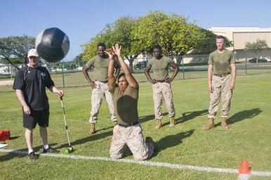 | Keywords: HITT me, Athletes win, invited to finals in California 150730-D-RT812-183.jpg en Cpl Aliye Nyoka makes his attempt in the kneeling medicine ball throw event during the High Intensity Tactical Training Tactical Athlete Competition held at Riseley Field July 29 2015 Nyoka is a landing support red patcher with Combat Logistics Battalion 3 The match was officiated by Marine Corps Community Services staff at the Semper Fit Center The mission of MCCS is to contribute to the readiness and retention of Marines Sailors and family members aboard Marine Corps Base Hawaii by providing fitness and recreation programs Marine and family programs and business activities in garrison and deployed environments U S Marine Corps photo by Christine Cabalo/Released 2015-07-29 Christine Cabalo https //www dvidshub net/image/2096362 150730-D-RT812-183 2015-07-30 18 35 MARINE CORPS BASE HAWAII HI US 4 PD-USGov Marine Corps Base Hawaii Images from DoD uploaded by Fæ |