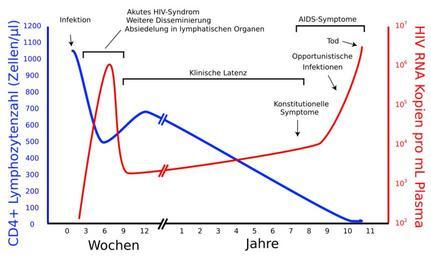 | Keywords: HIV-timecourse-de.svg Zeitlicher Verlauf der HIV-Infektion bis zum Auftreten klinischer Symptome in Abhängigkeit von der T-Helferzellzahl en Vectorized version of graph showing HIV viral load in relation to CD4+ lymphocyte count 2011-06-03 Hiv-timecourse_copy svg 50 2012-09-02 12 46 UTC Hiv-timecourse_copy svg Sigve derivative work Furfur German translation with minor changes Furfur Hiv-timecourse_copy svg Cc-zero Original upload log This image is a derivative work of the following images File Hiv-timecourse_copy svg licensed with Cc-zero 2011-06-04T15 50 06Z RicHard-59 729x433 183093 Bytes <nowiki>Added timearea of AIDS-symptoms</nowiki> 2011-06-03T00 26 35Z Sigve 729x433 175338 Bytes <nowiki>added a line to the acute phase</nowiki> 2011-06-03T00 20 25Z Sigve 729x433 175608 Bytes <nowiki>converted to real SVG-format instead of Adobe </nowiki> 2011-06-03T00 18 27Z Sigve 729x433 12194 Bytes <nowiki></nowiki> Uploaded with derivativeFX HIV time course |