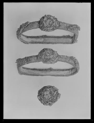 | Keywords: Hjälmkrans faveur - Livrustkammaren - 42929.tif LSH artwork sv Hattband hjälmkrans 1600-talets början möjligen tornerpris s k faveur <br/>Band b 28 mm stoppad och trädd på hård stomme Klädd med mörkröd sidenatlas med broderi av silvertråd i form av fyrbladiga blommor samt rankor Mitt fram en ros av urspr rosa sidenband numera blekta kantade med virkad silvertråd Runt kran-sen i övrigt fem snedställda veckade likadana band <br/><br/>Insidan fodrad med ett naturfärgat linneband <br/><br/>Enl kat 1932 537 kallade Hatteband gammalt mode i inv 1672 och ingående bland livréerna original caption hjälmkrans faveur - LRK 12604 early other date century 17 silver thread - silk Färg rosa material siden - linen g 130 size mm 210 LRK Gustav II Adolf av Sverige Riddartid - sköna riddare och tappra jungfrur 2002 Fest och fritid vid hovet 2003 place of origin original filename LN_A01265_001265 49134 inventory number LRK 12604 42929 CC0 Hjälmkrans faveur - Livrustkammaren - 42929-negative tif <gallery caption Different images of same object > File Hjälmkrans faveur - Livrustkammaren - 42911 tif File Hjälmkrans faveur - Livrustkammaren - 34353 tif File Hjälmkrans faveur - Livrustkammaren - 51471 tif </gallery> Media contributed by LSH unmatched material Media contributed by LSH unmatched objKeyword Media contributed by LSH without any categories Media contributed by LSH 2014-06 |