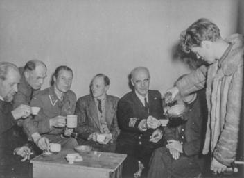 | Keywords: andre verdenskrig andreverdenskrig vårslipp 2015 vårslipp2015 frigjøring 2. verdenskrig 2verdenskrig 00 ukjent 00ukjent finnmark norge people groupshot blackandwhite monochrome black and white Original bildetekst: Den norske militærmisjonen fra England under ledelse av oberst Dahl har tatt opp sitt arbeide i Norge. De første norske sivile myndigheter er utnevnt, og samarbeidet mellom Ute- og Hjemmefronten er dermed kommet igang. Bildet viser det første møte mellom Militærmisjonen og Hjemmefrontens menn. Fra venstre sees: kommandørkaptein Jørgensen, bergenseren Stuhr, oberst Dahl, den nyutnevnte ordfører i Vardø - løytnant Granås (som på egen hånd organiserte et forsvar av bebyggede steder før Militærmisjonen og troppene kom til stedet), innkjøpssjef Møller og ordføreren i N. Varanger. Arkivreferanse: NTBs krigsarkiv i Riksarkivet (RA/PA-1209/U/Uj/L0219a) Original bildetekst: Den norske militærmisjonen fra England under ledelse av oberst Dahl har tatt opp sitt arbeide i Norge. De første norske sivile myndigheter er utnevnt, og samarbeidet mellom Ute- og Hjemmefronten er dermed kommet igang. Bildet viser det første møte mellom Militærmisjonen og Hjemmefrontens menn. Fra venstre sees: kommandørkaptein Jørgensen, bergenseren Stuhr, oberst Dahl, den nyutnevnte ordfører i Vardø - løytnant Granås (som på egen hånd organiserte et forsvar av bebyggede steder før Militærmisjonen og troppene kom til stedet), innkjøpssjef Møller og ordføreren i N. Varanger. Arkivreferanse: NTBs krigsarkiv i Riksarkivet (RA/PA-1209/U/Uj/L0219a) |