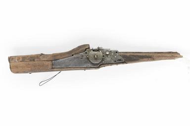 | Keywords: Hjullåsbössa, 1600-tal - Skoklosters slott - 90990.tif LSH artwork sv Hjullåsbössa söndrig Tysk eller dansk tillverkning 1600-talets början <br/>Pipa saknas Har varit slåtborrad <br/>Hjullås Låsbleck av tysk typ Bakåt avsmalnande genom två fall Mycket låg krutskärm Hjulet med graverad dekor numera mycket nött <br/>Hel stock av trä Tysk kolvtyp Mycket smal vinge Ursprungligen två låsskruvsbrickor av ben Kolvlåda med lock Framstocken avbruten - finnes Sluten laddstocksränna Benbrickor kring pipstiftshålen <br/>Tillbehör Laddstock <br/>Märkt 10 5 inslaget ovanför låsblecket stanstyp 5373 <br/>Rött lacksigill ovanför kolvlådan <br/>1710 års inventarium rum II p 10 137-105-1 Gammal gemen Hagelbyssa med Hiulååss original caption Hjullåsbössa 1600-tal early other date century 17 wood - steel SKO place of origin original filename sm_dig7666 35829 inventory number SKO 14971 90990 CC-BY-SA Erik Lernestål Muskets Photographs of weapons by Erik Lernestål Media contributed by LSH 2016-05 |