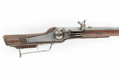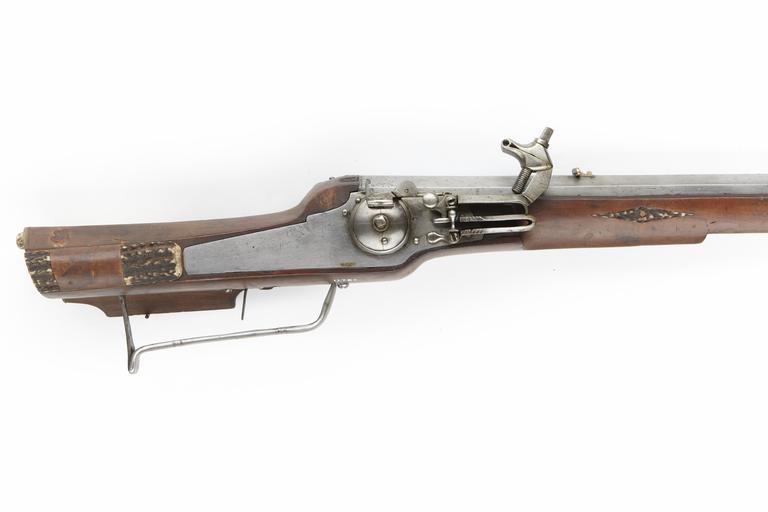 | Keywords: Hjullåsbössa, 1620-1650 - Skoklosters slott - 90851.tif LSH artwork sv Rund över kammaren åttkantig slätborrad pipa av stål På kammaren 2 ggr stämpel med sammanflätade bokstäver THOR Stöckel nr 4581 ca 1620-1650 Ståndsikte och korn av mässing Siktskåra mellan korsskruv och sikte Tre piphäften <br/>Hjullås Låsbleck av tysk typ - bakåt avsmalnande genom två fall Kullrig hjulkapsel Låg vertikal krutskärm Hane med lös underkäke utan foingergrepp Vertikalhjulstudel <br/>Hel stock av brunt trä Tysk kolvtyp Bakplåt och stödkula av horn På anslaget trapetsformig benplatta s k holsteinsk Låsskruvar och pipstift med hjorthornsbeslag Näsband och rörka av hjorthorn Trågformig s k holsteinsk varbygel Avtryckare med ställskruv <br/>Tillbehör Laddstock saknar doppsko <br/>Märkt 101 ovanför låsblecket stanstyp 5373 Rött lacksigill ovanför kolvlådan nött original caption Hjullåsbössa 1620-1650 <br/> Nyckelord Hjullåsbössa Föremålsbild 1600-tal ca other date - 1620 1650 wood - deer antler - steel size mm 1085 pipa size mm 1365 size mm 115 SKO place of origin original filename sm_dig7531 33384 inventory number SKO 12708 90851 CC-BY-SA Erik Lernestål 17th-century weapons Wheellock firearms Muskets Photographs of weapons by Erik Lernestål Media contributed by LSH dim-with multiple size templates Media contributed by LSH 2016-05 |