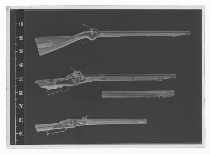 | Keywords: Hjullåslodbössa, hanspännslås, signerat Koch, 1600-talets andra hälft, möjligen Johan Koch - Livrustkammaren - 1206-negative.tif Åttsidig fyraräfflad pipa av stål skålade bommar Rektangulärt svansskruvblad <br/>Riktmedel Inlaxat ståndsikte med u-formig skärm inlaxat spolformigt korn av mässing <br/>Fästning Tre häften Pipan fäst med krysskur samt tre pipstift av stål <br/><br/>Hjullås hanspännslås med plant låsbleck av västeuropeisk typ med fasade kanter på bakspetsen snidad dekor i form av en odjursmask I övrigt graverad dekor blomrankor bakom hjulet en ekorre framför hjulet signatur Koch Hjulet saknas ursprungligen fäst med studel kl 6 Fängpanna med fasetterad framkant låg rak krutskärm fästskruven saknas Platt konturerad hane i form av drake graverad dekor svansen upprullad rund hanskruven avbruten huvudet saknas Lös underkäke käkskruv med litet klotformigt huvud på svarvat skaft Långt svagt svängt fingergrepp avslutat med ekollonformig kula Kraftig fyrsidig hanfjäder med s-formigt nedåtsvängd övre arm under hanfoten Hjulaxeln förenad med slagfjädern saknas med kedjelänk Spänning med kedja som lindas runt hanaxeln Avtryckarstångens fästskruv och fjäder saknas <br/>Fästning Två låsskruvar en i kolvlådan <br/>Avtryckare med upprullad ände Avtryckarbleck med rundad ände <br/><br/>Helstock av valnöt med kolv av fransk typ med kindstöd och kolvlåda Snidad dekor vid kindstödets framände lister runt beslagen blad på kolvlådelocket Beslag av stål bakplåt med fågelhuvudliknande konturerad ryggflik två skruvar Kolvlådelockets ände stålbeslagen S-formigt svängt välvt sidbleck med i mitten en oval plåt Tre svarvade rörkor slät konturerad spets Näsband med bakåtriktad spets S-formig vinkelböjd varbygel bygeldelen svagt profilerad med mittlist framtill avslutad med treklöver bakre armen slät välvd med rundad avslutning två skruvar original caption ca other date - 1650 1679 walnut e3 - eldvapen - stock material valnöt - steel e1247 - eldvapen - pipa lås riktmedel och beslag material stål - brass e4 - eldvapen - riktmedel material mässing g 4410 size mm 190 size mm 732 pipa size mm 1135 LRK Nils von Lantingshausen von Höpken Löjtnant Koch anv e2 - eldvapen - lås; Johan Koch Koch anv e2 - eldvapen - lås; Johan Koch place of origin original filename LN_B09190_012070 47845 inventory number LRK 11183 1206 CC0 Hjullåslodbössa hanspännslås signerat Koch 1600-talets andra hälft möjligen Johan Koch - Livrustkammaren - 1206 tif <gallery caption Different images of same object > File Hjullåslodbössa hanspännslås signerat Koch 1600-talets andra hälft möjligen Johan Koch - Livrustkammaren - 1204 tif File Hjullåslodbössa hanspännslås signerat Koch 1600-talets andra hälft möjligen Johan Koch - Livrustkammaren - 9764 tif </gallery> |