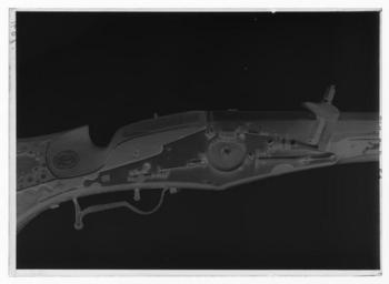 | Keywords: Hjullåsmusköt, Amsterdam 1596 - Livrustkammaren - 26973-negative.tif Rund slätborrad pipa pipans bakre tredjedel åttsidig undersidan grovfilad fasningskanterna markerade med parallella linjer Vid pipbasen vulst med ingraverade tvärgående linjer vid övergången rund-kantig del två vulster Svag trumf Vid mynningen två graverade ringar På kammarens ovansida stämplar på överfältet en oval stämpel R R och sköld LRK vägl 1921 409 samt en krönt stämpel upp-och nedvänd Amsterdam Dessutom på vardera av de två omgivande fälten stämpel i form av en pistol LRK vägl 1921 264 <br/>Riktmedel V-formigt sikte och knoppkorn av stål <br/>Fästning Tre häften varav ett saknas Pipan fäst med krysskruv samt ett pipstift längst bak <br/><br/>Hjullås av tysk typ med plant låsbleck rundat blad på bakspetsen rundad inskärning i kanten nedanför hanen På låsbleckets bakre del stämplel sköld med D I tre femuddiga stjärnor en och två samt nertill en liggande månskära Utvändigt hjul fäst med ring och skruvar kl 3 och 9 Fängpanna fäst med två skruvar varav den främre saknas rundad undersida Fängpannelock med rörlig arm grepp med svarvad främre del Hane med balusterformig kropp rak fyrsidig hals trapetsformiga käkar med kraftig tandning underkäken lös Käkskruv med fyrsidigt huvud och ändkula Hanfjäder med fasade sidor skålning i vinkeln kort nedre arm Punsad dekor på hanfjädern hanfoten hanhuvud och hals hjulet hjulringen och virvelsäkringen Låsbleckets insida grovfilad studeln slagfjädern och stången polerade och volutprydda <br/>Säkring På bakre delen virvelsäkring med svarvat grepp fjäder med kortare bakre övre arm fasade kanter och skålning i vinkeln <br/>Fästning Två låsskruvar <br/>Svarvad avtrckare med kulformig ände Volutprytt avtryckarbleck <br/><br/>Helstock av valnöt muskötkolv med utskuret tumgrepp framstock med sluten laddstocksränna Inläggningar av benlister och graverade benplattor På kolvens h sida övre och nedre fältet de stora plattorna bortfallna på övre fältet dock ett bladornament samt en sol med mansansikte V sida övre fältet kvinnofigur i fotsid klädnad med djur får vid sin h sida vid kvinnans fötter graverat årtal 1596 i övrigt bladrankor Nedre fältet bakåtblickande drake med en gång omslagen kropp Runt kolvens bakkant återstår två av urspr fem benplattor med rankgravyr Bakplåt graverad i fält med parallella linjer Sidbleck med jaktmotiv fyra män varav en till häst jagande vildsvin två män beväpnade med lansar ryttaren med musköt den fjärde saknas delvis På sidan om svansskruvbladet plattor med graverade tritoner skäggprydda med kvinnobröst bakom svansskruvbladet platta med graverat årtal 1596 På framstocken under kammaren benplatta med graverade frukter och blad På framstockens båda sidor graverade djurbilder troligen tre hundar två hjortar och en hare på vardera sidan skadade en hare borta på v sida samtliga djur springer framåt utom det andra framifrån Dessutom större runda eller njurformiga inläggningar med gravyr Varbygel av stål bakåt utdragen och skålformig bakre stolpen mot kolven avslutad med snäcka nederänden i form av kula bygeln streckornerad original caption Slaget vid Mitau 1596 walnut e3 - eldvapen - stock material valnöt - steel e1247 - eldvapen - pipa lås riktmedel och beslag material stål - bone e78 - eldvapen - stockbeslag och stockdekor material ben g 8130 size mm 960 pipa size mm 1294 LRK Gustav II Adolf av Sverige Musket Roer en Pistolet 1974 Der dreissigjährige Krieg 1984 Krigsbyte 2007-2008 Amsterdams vapen Stöckelnr 1261/6039 anv e1 - eldvapen - pipa; anonym kontrollör D I måne o stjärnor anv e2 - eldvapen - lås; anonym låssmed pistol anv e1 - eldvapen - pipa; anonym pipsmed R R över sköld med I N anv e1 - eldvapen - pipa; anonym pipsmed Amsterdams vapen Stöckelnr 1261/6039 anv e1 - eldvapen - pipa; anonym kontrollör D I måne o stjärnor anv e2 - eldvapen - lås; anonym låssmed pistol anv e1 - eldvapen - pipa; anonym pipsmed R R över sköld med I N anv e1 - eldvapen - pipa; anonym pipsmed place of origin Amsterdam original filename LN_B10023_012903 47698 inventory number LRK 11682 26973 CC0 Hjullåsmusköt Amsterdam 1596 - Livrustkammaren - 26973 tif <gallery caption Different images of same object > File Hjullåsmusköt - Livrustkammaren - 77088 tif </gallery> |
