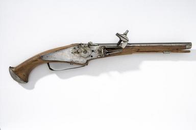 | Keywords: Hjullåspistol - Livrustkammaren - 56784.jpg Rund slätborrad pipa av stål med åttsidig kammare kraftigt profilerad pipbas smal ring vid övergången rund-kantig del Kort rektangulärt svagt böjt svansskruvblad <br/>Fästning Två häften Pipan fäst med krysskruv underifrån samt två pipstift av trä <br/><br/>Hjullås med plant låsbleck rundad bakände delen framför hjulet smalare än den bakre delen rundad insvängning av nederkanten mitt för hjulet Utvändigt hjul fäst med studel kl 9 rund studelplatta över hjulet Rektangulär fängpanna med två hak i nederkanten låg rak krutskärm Fängpannelock med rörlig arm halvcylindriskt grepp med svagt välvd arm med rundad ände två tvärlinjer vid änden Hane med svagt böjd åsad kropp och fyrsidig hanhals med svagt böjd framsida lös underkäke käkskruv med fyrsidigt huvud Hanfjäder med fasade kanter platt bandformig studel litet droppformigt fjäderlöv <br/>Fästning Två låsskruvar <br/>Avtryckaren saknas <br/><br/>Helstock av ljust trä bok böjd kolv med spetsoval kolvände vinklad nedsvängning vid hjulet Mellan låsskruvarna inslaget dekor i form av stjärna av ornamentsstämplar Beslag av stål slät kraftigt välvd spetsoval kolvkappa med mittnit Slät överrörka och näsband Bred bandformig varbygel bredast vid bakstolpen fyrsidig bakstolpe inskruvad i kolven framänden fäst med spik på framsidan av stockens utbuktning vid hjulet <br/><br/>Tillbehör <br/>Laddstock av trä l 300 mm original caption hjullåspistol - LRK 4568<br/> Nyckelord Hjullåspistol Pistol Föremålsbild early other date century 17 steel e127 - eldvapen - pipa lås och stockbeslag material stål - wood e3 - eldvapen - stock material trä size mm 529 size mm 313 pipa size mm 125 g 1200 LRK Gustava Charlotta Granath f Fleetwood Friherrinna Carl Axel Fleetwood friherre Bernhard Axel Fleetwood friherre place of origin Suhl original filename lm_dig2154 41109 inventory number LRK 4568 56784 CC-BY-SA Göran Schmidt <gallery caption Different images of same object > File Hjullåspistol Suhl 1600-talets början - Livrustkammaren - 17514 tif </gallery> Göran Schmidt Wheellock pistol images from Livrustkammaren Media contributed by LSH dim-with multiple size templates Color images from Livrustkammaren Media contributed by LSH 2013-10 |