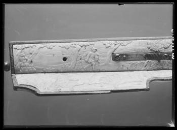 | Keywords: Hjullåsstudsare, Westphalen ca 1660 - Livrustkammaren - 70432.tif LSH artwork sv Åttsidig sjuräfflad pipa bombredd 2 8 mm Rektangulärt svansskruvblad På kammaren en sköldformig stämpel med hand och därovanför tre otydliga bokstäver G H N LRK vägl 1921 155 Dekor i form av graverade blomrankor på kammaren runt siktet och bakom kornet På kammaren dessutom ett fält med landskap med en hjort och två hundar Riktmedel Ståndsikte av stål med bred u-formig skärm Spolformigt korn av mässing båda inlaxade två laxningar för siktet Fästning Pipan fäst med krysskruv underifrån främre varbygelskruven samt tre pipstift av trä Hjullås av tysk typ plant låsbleck l 205 mm Dekor i form av graverade blomrankor i låg relief mot mörkskrafferad bakgrund Bakom hjulet ett ovalt fält med landskap med en kavalleristrid Utanpåliggande hjul fäst med halvcirkelformig uppåt breddad ring fäst med två skruvar kl 3 och 9 Svängd eldskärm avslutad med horisontell hjärtformig spets Fängpannelock med rörlig arm lockets framkant fasad och försedd med graverad dekor svängt rundat fingergrepp framtill avslutat med ett treflikigt blad Hane med fyrsidig kropp med rundad räfflad utsida ringformig hanhals med stor skärm lös överkäke Hals och käkar graverade som fågelhuvuden Uppåtböjt fingergrepp avslutat med en rund platt med spiralgravering Käkskruv med fyrsidigt huvud upptill koniskt med kulformig avslutning Hanfjäder med fasade kanter konturerad studel med glasögonformig genombrytning Avtryckarstången och fängpannelockets stoppfjädrar blånerade Fästning Två låsskruvar Avtryckare med konturerat och profilerat snälltryck Helstock av rödmålat trä rödbok nästan helt täckt med elfenbensplattor med snidad dekor Kolv av tysk typ med kolvlåda och vinge framtill avslutad med volut Den snidade dekoren föreställer landskap med jaktscener se Hellner Kolvlådelock av elfenben Bakplåt av elfenben med en satyr Kolvkula av stål Spetsrörka av elfenben med maskaron Bred varbygel av stål med tre fingerlägen korta genombrutna armar på bygeln graverad rankdekor samt ovalt fält med landskap med jägare hund och hjort Tillbehör Laddstock av rödmålat trä l 781 mm i ena änden ett invändigt gängat stålrör l 120 mm I den andra en benskoning l 42 Plattan kommer fram ur munnen på ett snidat fiskhuvud Gåva till Karl XI från landshövdingen friherre Augustin Leijonsköld 1634-1682 original caption ca 1660 steel e1247 - eldvapen - pipa lås riktmedel och beslag material stål - brass e4 - eldvapen - riktmedel material mässing - ivory e78 - eldvapen - stockbeslag och stockdekor material elfenben - beech e3 - eldvapen - stock material rödbok g 4280 size mm 774 pipa size mm 1068 LRK Karl XI av Sverige Augustin Leijonsköld basutställning Gallica 1945 Livrustkammarens basutställning 1978 Krigets prakt 2003-2004 place of origin DE Westphalia original filename LN_B16588_019468 39530 inventory number LRK 2920 70432 CC0 Hjullåsstudsare Westphalen ca 1660 - Livrustkammaren - 70432-negative tif <gallery caption Different images of same object > File Hjullåsstudsare Westphalen ca 1660 - Livrustkammaren - 43315 tif File Hjullåsstudsare Westphalen ca 1660 - Livrustkammaren - 10506 tif File Hjullåsstudsare Westphalen ca 1660 - Livrustkammaren - 27630 tif File Hjullåsstudsare Westphalen ca 1660 - Livrustkammaren - 19068 tif File Hjullåsstudsare Westphalen ca 1660 - Livrustkammaren - 10775 tif File Hjullåsstudsare Westphalen ca 1660 - Livrustkammaren - 78992 tif File Hjullåsstudsare Westphalen ca 1660 - Livrustkammaren - 44749 tif File Hjullåsstudsare Westphalen ca 1660 - Livrustkammaren - 60420 tif File Hjullåsstudsare Westphalen ca 1660 - Livrustkammaren - 1946 tif File Hjullåsstudsare Westphalen ca 1660 - Livrustkammaren - 26180 tif File Hjullåsstudsare Westphalen ca 1660 - Livrustkammaren - 61870 tif File Hjullåsstudsare - Livrustkammaren - 51368 tif File Hjullåsstudsare Westphalen ca 1660 - Livrustkammaren - 53310 tif File Hjullåsstudsare Westphalen ca 1660 - Livrustkammaren - 1945 tif File Hjullåsstudsare Westphalen ca 1660 - Livrustkammaren - 36191 tif File Hjullåsstudsare Westphalen ca 1660 - Livrustkammaren - 78991 tif File Hjullåsstudsare Westphalen ca 1660 - Livrustkammaren - 78990 tif File Hjullåsstudsare Westphalen ca 1660 - Livrustkammaren - 60464 tif File Hjullåsstudsare Westphalen ca 1660 - Livrustkammaren - 77541 tif File Hjullåsstudsare Westphalen ca 1660 - Livrustkammaren - 70431 tif File Hjullåsstudsare Westphalen ca 1660 - Livrustkammaren - 71153 tif File Hjullåsstudsare Westphalen ca 1660 - Livrustkammaren - 61871 tif File Hjullåsstudsare Westphalen ca 1660 - Livrustkammaren - 60459 tif File Hjullåsstudsare Karl XI - Livrustkammaren - 31010 tif File Hjullåsstudsare Westphalen ca 1660 - Livrustkammaren - 53309 tif File Hjullåsstudsare - Livrustkammaren - 95341 tif File Hjullåsstudsare Westphalen ca 1660 - Livrustkammaren - 70433 tif </gallery> Muskets Media contributed by LSH dim-with multiple size templates Media contributed by LSH 2016-12 |