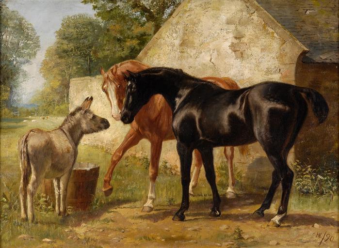 | Keywords: HL Ein neuer Freund.jpg  datiert 1890 Oil on canvas cm 56 76 institution http //www duesseldorfer-auktionshaus de/ 2011/1 other versions PD-old-100 Images from Düsseldorfer Auktionshaus 19th-century unidentified painters 1890 paintings 19th-century portrait paintings location missing 19th-century paintings of horses Paintings of donkeys Black horses in art Oil paintings of horses |